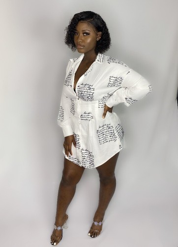 Glamaker Letter Print Shirt Dress